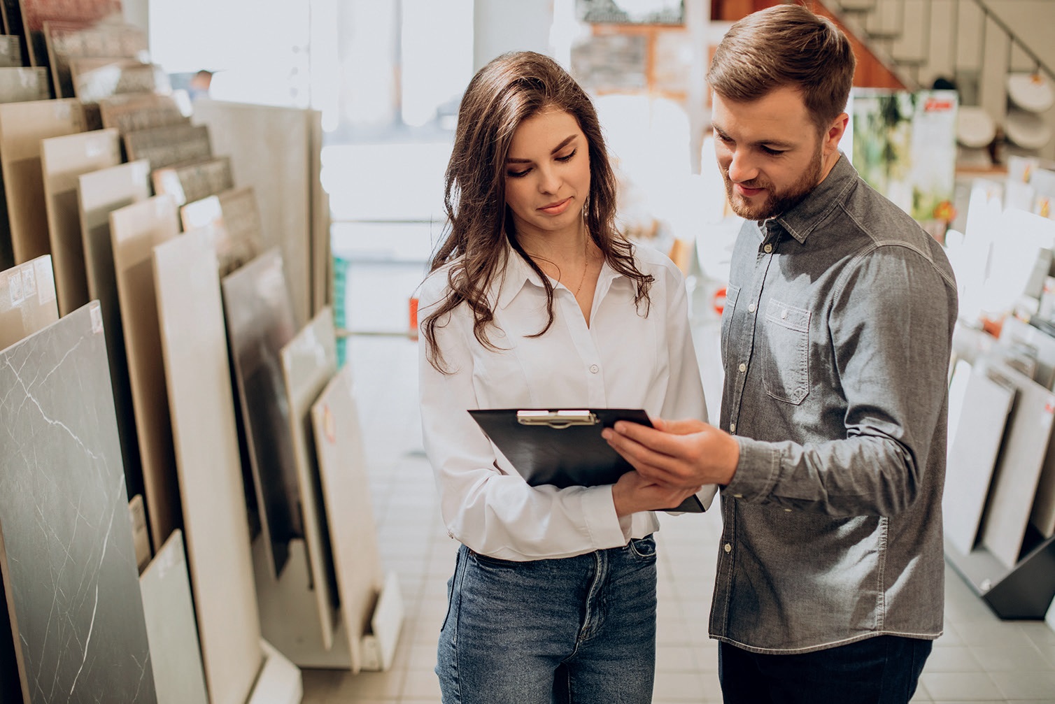 - über eine hinterlegte Bildergalerie können die Fliesen noch mehr überzeugen als allein über die Präsentation in der Ausstellung